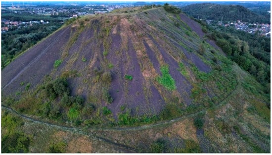 - Frenzel, M.; Hertwig, T.; Willscher, S.; Sohr, A. Branchenbezogene Merkblätter zur Altlastenbehandlung: 18: Steinkohlenbergehalden; Sächsisches Staatsministerium für Umwelt und Landwirtschaft: Dresden, Germany, 2009. [Google Scholar]