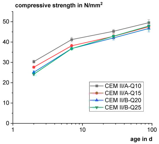 | CEM II/B-Q25 | 3.04 | 4130 | 17,300 | 2.2 | 15.8 | 56.5 |