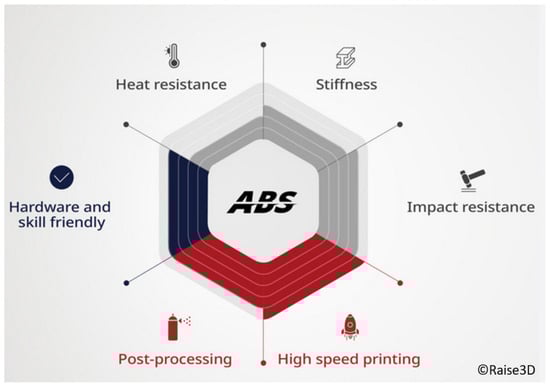 On the other hand, high-speed ABS, developed as a direct response to the limitations of traditional ABS, is designed for applications that demand higher mechanical strength, temperature resistance, and durability. Standard ABS requires careful temperature control and the use of a heated bed to prevent warping and ensure optimal layer adhesion, especially in larger prints. High-speed ABS variants are formulated with additives that enhance the material’s processing capabilities at faster extrusion rates. These formulations maintain the material’s essential qualities, such as toughness and impact resistance, but are more suited to high-speed printing environments [58]. The main benefit of high-speed ABS is its ability to produce strong, durable parts with a reduced print time, which is crucial for industries such as automotive and manufacturing, where the rapid production of functional prototypes and parts is necessary. While high-speed ABS reduces printing time, challenges such as warping and post-processing (sanding or smoothing) still per-sist, and users must ensure appropriate environmental controls (e.g., heated build plat-forms or enclosed print areas) to achieve optimal results [59]. Despite these challenges, high-speed ABS is increasingly being used in applications that demand functional performance, such as automotive prototypes, tools, and housings for electronics.