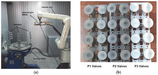 - BCs were deposited on all the valve plates simultaneously, followed by the three types of top coats, respecting the spray parameters indicated by the manufacturer for each type of powder. The as-coated aspect of the samples is presented in Figure 1b.