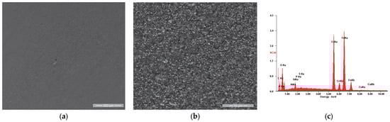 For the initial state, the coating’s porosity (P) and the efficiency during a corrosive attack (Pe) were calculated using Equations (2) and (3) [65,66]: