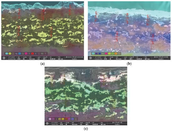 For the top coat, a representative powder was selected from each of the three major categories of powders used in thermal spray processes: metallic powders (P1), cermet powders (P2) and ceramic powders (P3). The selection was based on references from the specialized literature (see Table 1) and the manufacturer’s specifications [58,59,60]. The powders were chosen to have, as the main criterion, high-temperature wear and corrosion resistance (higher than 800 °C), together with other surface functions, such as abrasion protection, corrosion resistance (in corrosive gas/liquid), erosion protection in gas flow and high-temperature oxidation resistance.