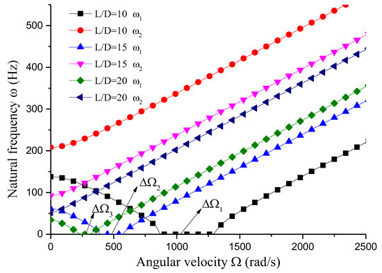Influence of aspect ratio on vibration stability (D = 0.04 m, a = 0.01 m, θ = 45°, d = 0.01 m).