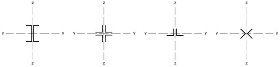 in which Lcr is the buckling length equal in the case of the analyzed structure to 1.25 m, iv is the section’s radius of inertia with respect to the weak axis, and fdy is the dimensionless yield strength of steel equal to 235.