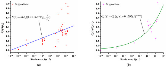 Changes in mechanical properties of the EHM with strain rate: (a) Strength. (b) Fracture toughness.