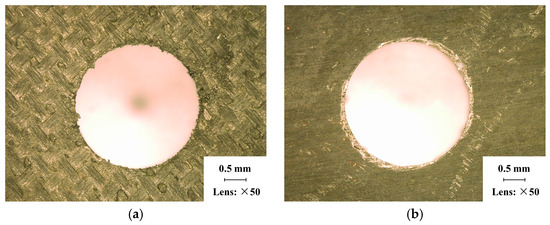 Due to the extraordinary mechanical properties of carbon fiber-reinforced plastics (CFRPs), including high specific strength, high specific modulus, and excellent damage tolerance, the applications of high-performance parts made of these composites have shown an obviously increasing trend in aerospace, transportation, and energy fields [1,2]. The CFRP parts are required to be joined with other components by bolts or rivets in the assembly process. Therefore, drilling is an essential process for CFRP component assembly [3,4]. However, CFRP drilling with high quality is still a considerable challenge. CFRP workpieces are commonly laminated by several prepregs with various fiber orientations, and each of the layers is composed of fibers and resins. These special material compositions and structural characteristics make the machining of CFRPs quite different from that of the traditional metals. Especially, the interlaminar bond strength of the CFRPs is weak, and the fibers with high strength are difficult to cut while the resin is easy to remove. In this situation, serious damages, including fiber pull-out, delamination, and burrs are generated easily in the drilling of CFRPs [5,6]. These damages would significantly reduce the bearing capacity of the CFRPs, and shorten the service life of the high-end equipment. Even worse, some damages could lead to serious assembly errors and part rejection [7,8]. Consequently, a primary objective for composite researchers is to investigate the mechanisms underlying the formation and distribution of drilling-induced damages in CFRPs, as well as to assess the impact of drill bit geometries and drilling parameters on such damages.