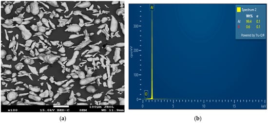 (a) SEM image; (b) SEM-EDS analysis of pure aluminum powder particles.