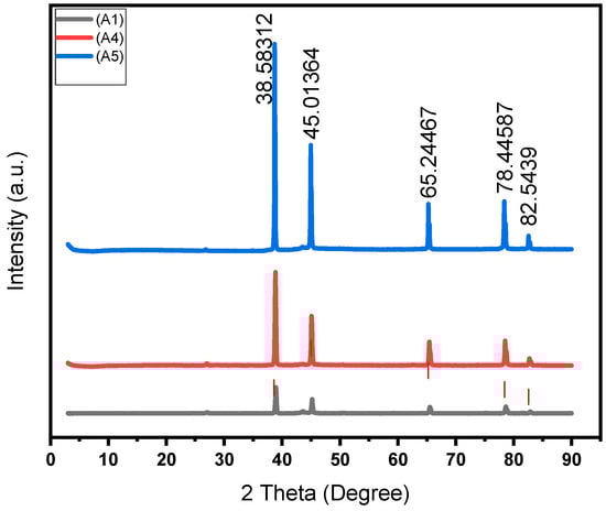 The degree of wettability between the matrix and reinforcement influences hardness. To improve the wettability in this study, 2 wt% Mg was introduced into the Al/PPA mixes. A maximum hardness of 77 HV was achieved at 15 wt% PPA concentration, as seen in Table 3. However, the composites synthesized with 20 wt% PPA (A5) consistently showed a decline in hardness, as illustrated in Figure 14. This can be explained by the weak interfacial bonding strength and poor surface adhesion. Therefore, it can be inferred that as the concentration of PPA increases, the degree of wettability and surface adhesion drops. In addition, the hardness of Al/Mg/PPA composites reinforced with 20 wt% PPA dropped because the PPA particles may not be as hard as the synthetic reinforcement particles such as B4C and SiC. More so, the K2O phase in the microstructure, as indicated by the XRD peaks, may be one of the weak phases that can impair hardness. Therefore, hardness reduces as the weight fraction of the weak phase increases in the composites.