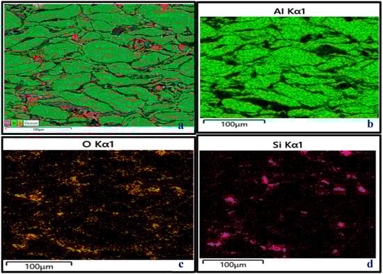 SEM mappings of Al/Mg/PPA composites (a–d) A2.