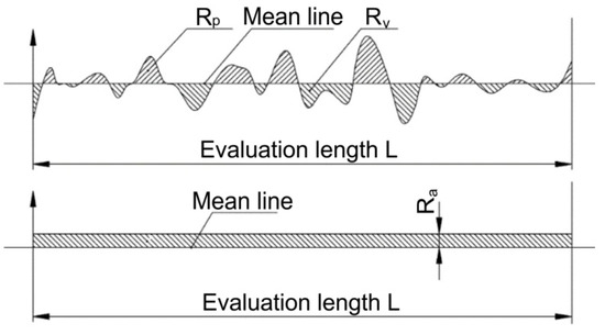 where L represents the sampling length and y(x) denotes the profile height at position x [26]. The Rz parameter, which provides insight into the extreme profile characteristics, is determined by [38]: