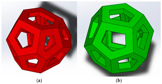 Weaire–Phelan cell: (a) hollow tetrakaidecahedron; (b) hollow dodecahedron.
