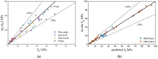 - Kim, C.; Kim, S.; Lee, J. Estimating Clay Undrained Shear Strength Using CPTu Results. Proc. Inst. Civil Eng. Geotec. 2009, 162, 119–127. [Google Scholar] [CrossRef]