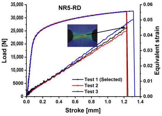 Load–stroke curves of QP980 for the Notched R5 specimens (NR-5) along RD.