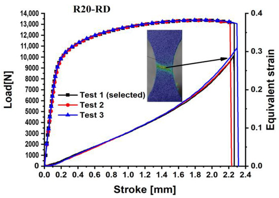Load–stroke curves of QP980 for the Notched R20 specimens along RD.