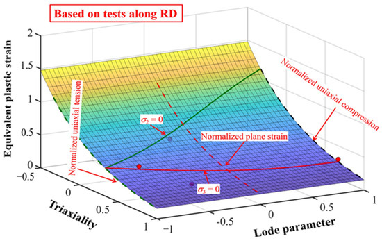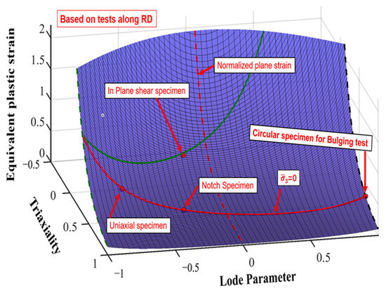 To describe the impact of the Lode parameter on the cut-off value, Lou et al. [55] added the material parameter to Equation (4), which implies that the function f(η, L, C) is envisaged to be written in the form of