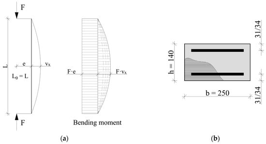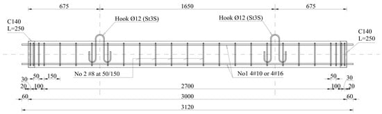 The dimensions of the elements were the same in all cases. The length of the columns was 3000 mm. The height and width of the cross-section were 140 and 250 mm, respectively.