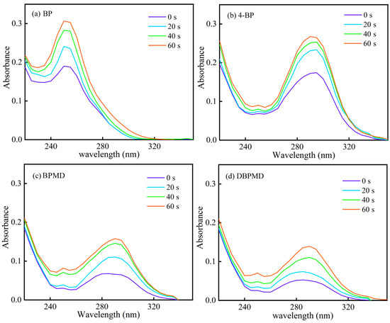 - Cheng, L.; Shi, W. Synthesis and photoinitiating behavior of benzophenone-based polymeric photoinitiators used for UV curing coatings. Prog. Org. Coat. 2011, 71, 355–361. [Google Scholar] [CrossRef]