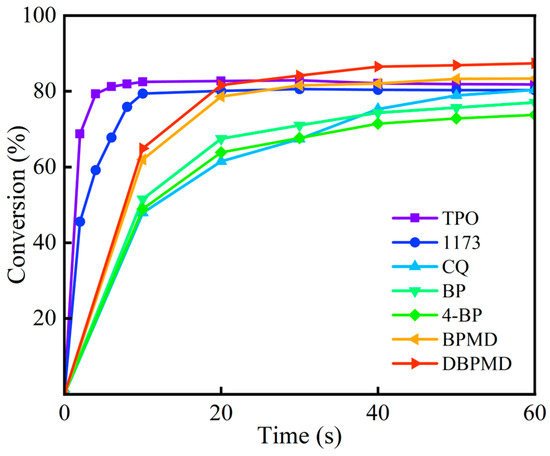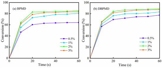 3.11.1. Effect of Photoinitiator Concentration on Photocrosslinking Kinetics