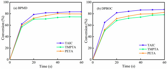 - Sanai, Y.; Ninomiya, T.; Arimitsu, K. Improvements in the physical properties of UV-curable coating by utilizing type II photoinitiator. Prog. Org. Coat. 2021, 151, 106038. [Google Scholar] [CrossRef]
