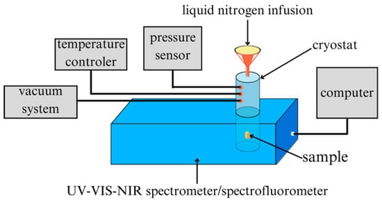 Schematic diagram of the apparatus for UV-Vis-NIR spectroscopic measurements and photoluminescence as a function of temperature.