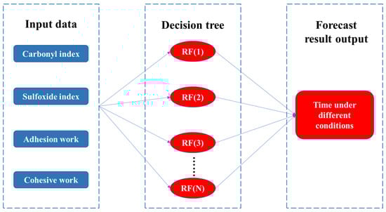 In the formula, is the combined classification model; is the decision classification model; Y is the output variable adhesive work, cohesive work, carbonyl index and sulfoxide index. Taking them as the corresponding characteristics, the importance of the characteristics is determined so as to achieve the purpose of classification. According to this analysis, random forest classification model is used. Random forest model is established according to the data, and the importance of characteristics is calculated.