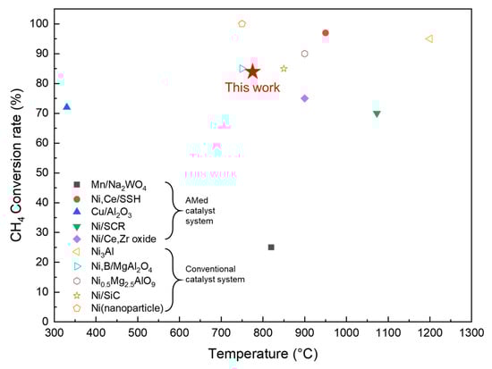 - Noh, Y.S.; Lee, K.Y.; Moon, D.J. Hydrogen production by steam reforming of methane over nickel based structured catalysts supported on calcium aluminate modified SiC. Int. J. Hydrogen Energy 2019, 44, 21010–21019. [Google Scholar] [CrossRef]