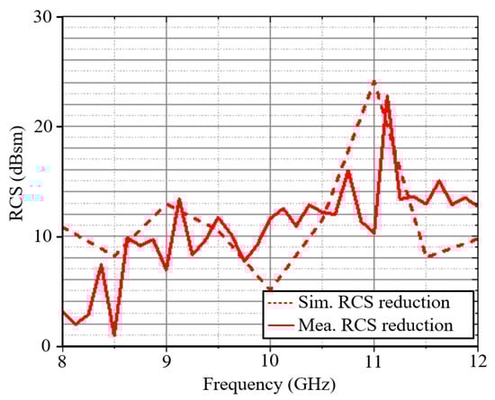 The simulated and measured RCS reductions for the proposed antenna.