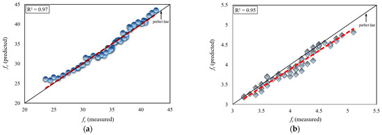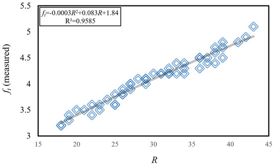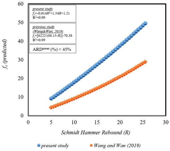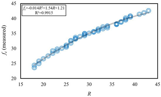 - A strong correlation was observed between compressive strength (fc) and Schmidt hammer rebound (R) values, as evidenced by a coefficient of determination (R2) of approximately 0.99. Similarly, a strong correlation was found between splitting tensile strength (ft) and R values, with an R2 of approximately 0.96.