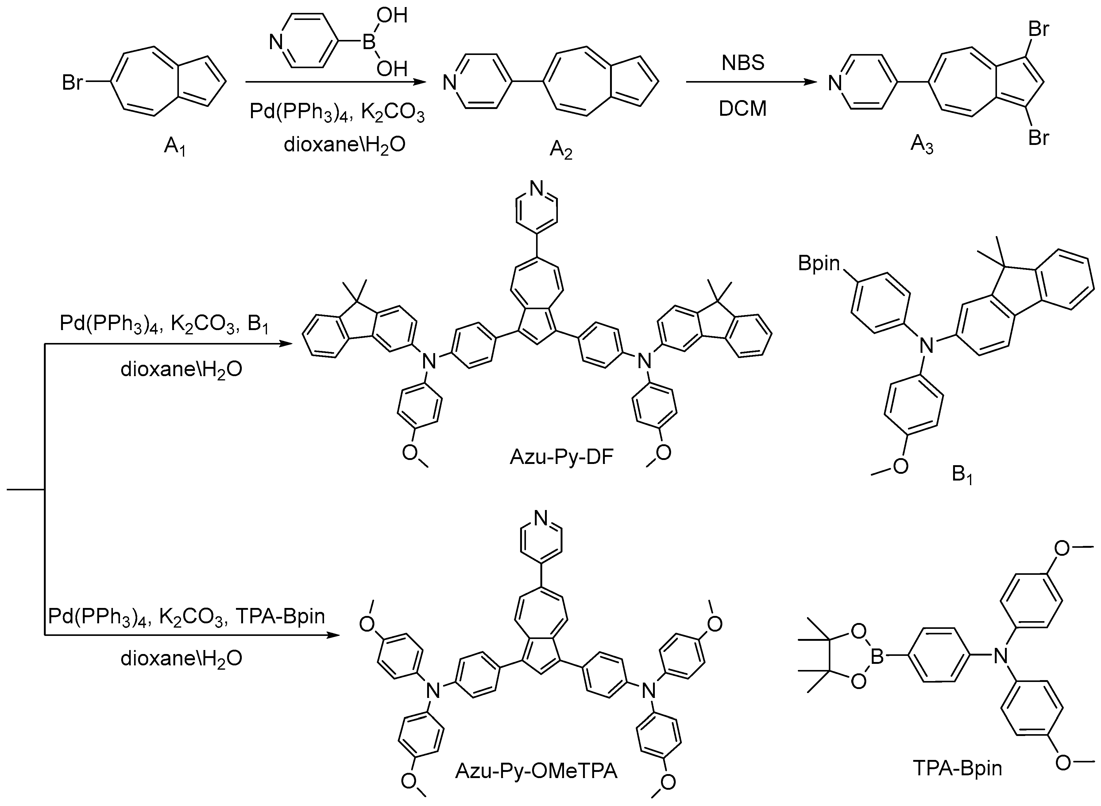 Synthetic routes of Azu-Py-DF and Azu-Py-OMeTPA.