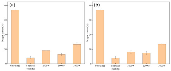 Surface oxygen content under different cleaning speeds: (a) v = 1.8 m/min; (b) v = 4.5 m/min.