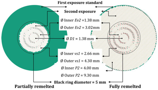 The process window defining laser scanning parameters is presented in Table 1, which explains how the control of the microstructure is attained during SLM by implementing adaptations of the scanning parameters in the second exposure. Here, represents energy density, P denotes laser power, corresponds to scanning speed, and D indicates spot size. The specimens were fabricated using modified SLM 250 HL and SLM 500 HL systems for AlSi10Mg and Ti-6Al-4V alloys, respectively. All specimens were built at a 90° orientation relative to the building platform. To introduce controlled thermal history effects, a second exposure treatment was applied at varying intensities, influencing the cooling rates and microstructural evolution of the material.
