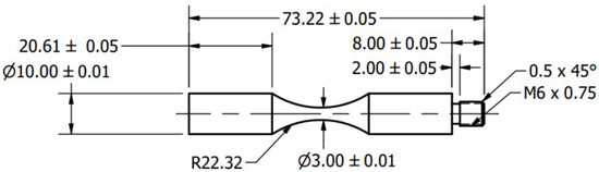 Specimen design in mm of a Ti-6Al-4V specimen at USF-2000A.