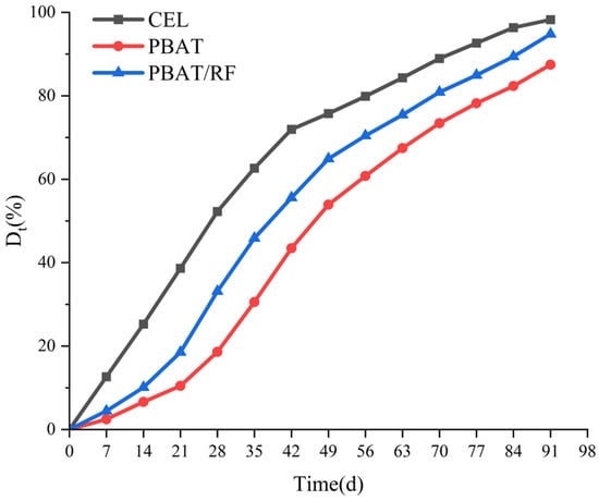 - The percentage of biodegradation was based on the cumulative amount of CO2 released, and the rate of biodegradation (Dt) was evaluated by using Equation (2):
