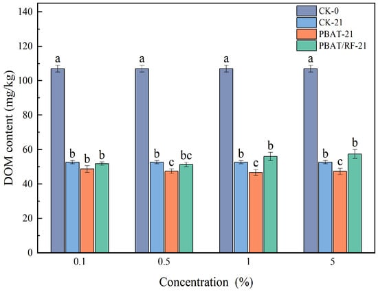 3.3.2. PBAT and PBAT/RF Mulch Films’ Effects on DOM