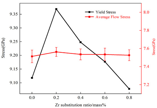 Relationship between ultimate tensile strength and flow stress with Zr content.