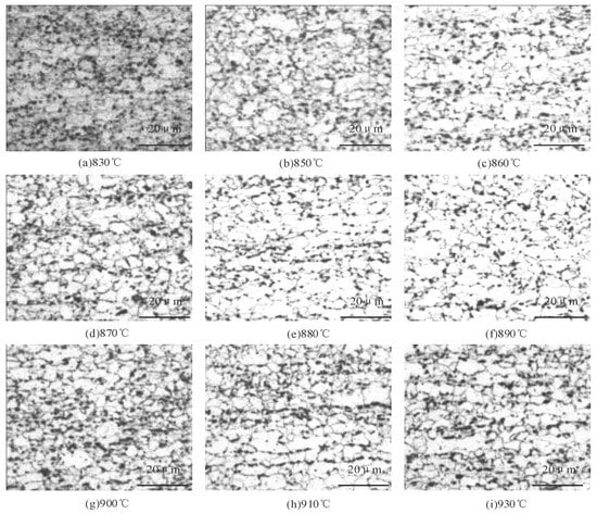 Figure 6 shows the metallographic structures of the samples, all of which are ferrite and pearlite structures, at different annealing temperatures.