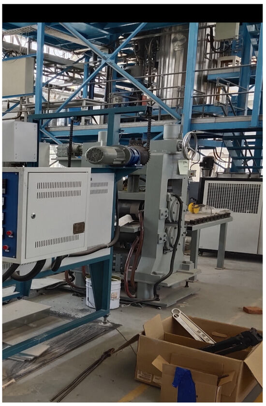 Utilizing MATLAB 2018 software, this study systematically investigated the effects of rolling speed, reduction rate, initial rolling temperature, and roller-workpiece friction coefficient on the final rolling temperature. The research aimed to elucidate the complex interdependencies among these critical rolling parameters and their cumulative influence on thermomechanical behavior during the rolling process. The experimental equipment is an electromagnetic rolling mill, as shown in Figure 1. This rolling mill is a two roll rolling mill, which can compensate for the heating of the rolling mill rolls through electromagnetic heating technology to achieve a stable rolling mill temperature within a certain range. Figure 2 shows the rolled material. Due to the narrow temperature range suitable for TiAl alloy rolling, an isothermal rolling process is required.