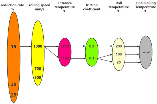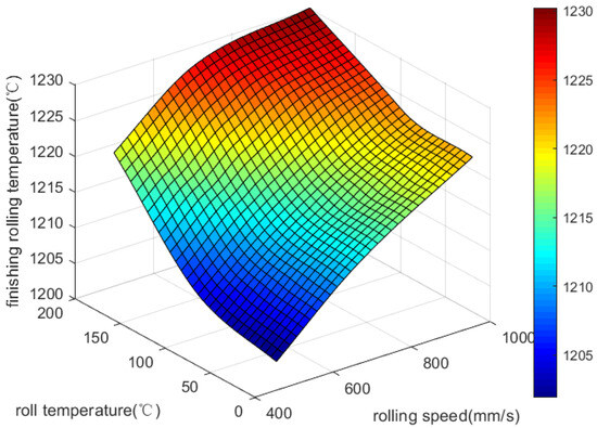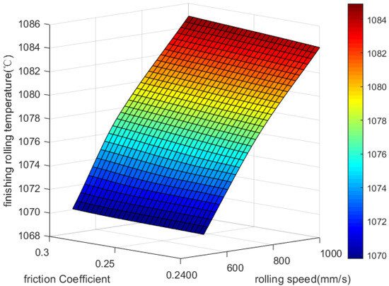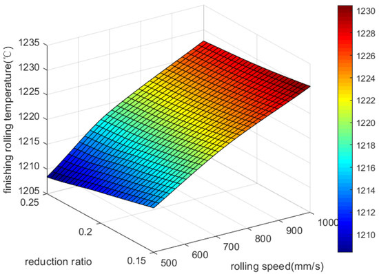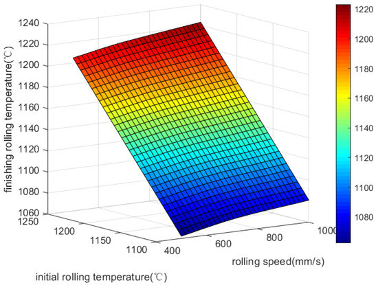 Figure 4 reveals that a gradual increase in rolling speed and initial rolling temperature leads to a gradual increase in rolling temperature. The final rolling temperature is significantly influenced by the rolling speed, but the inlet temperature determines the upper limit directly, so the influence of the inlet temperature on the finishing rolling temperature is more significant.
