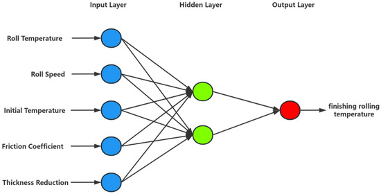 The final rolling temperature has a significant impact on the recrystallization of grains and the mechanical properties of rolled parts. The final rolling temperature is influenced by the coupling of various rolling conditions, making it difficult to accurately solve. GABP is a new prediction model for predicting important parameters of rolling mills. A neural network model based on hot rolling can predict important parameters under many working conditions, such as changes in plate size, static and dynamic recrystallization kinetics, and the mechanical properties of rolled parts. Due to the inability to directly measure the final rolling temperature, most of them are based on numerical methods, such as developing prediction software [1]. However, neural networks have become a popular tool for analyzing metal processing problems due to their flexible learning abilities. Neural network models have been used to analyze metallurgical processes and predict rolling parameters, such as flow stress during rolling [2], tensile performance evaluation [3], prediction of strip flatness during cold continuous rolling [4], prediction of mechanical cooling systems [5], microstructure analysis [6], etc. Fitsum Bekele Tilahun proposed an overall optimization framework for introducing solar thermal systems (ISTS) design using machine learning methods and evaluated different performance indicators [7]. Jiang M et al. constructed an online accurate prediction model for the hot crown of rolling rolls during the hot rolling process using neural networks [8]. Lee JH et al. successfully predicted the thermal conductivity of concrete containing composition, temperature, and moisture content using a backpropagation neural network [9].
