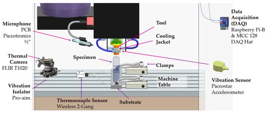 For the first time in the literature, a process monitoring and data collection system has been established for this process to simultaneously capture multiple process signatures such as temperature, force, sound, and vibrations, as illustrated in Figure 3.