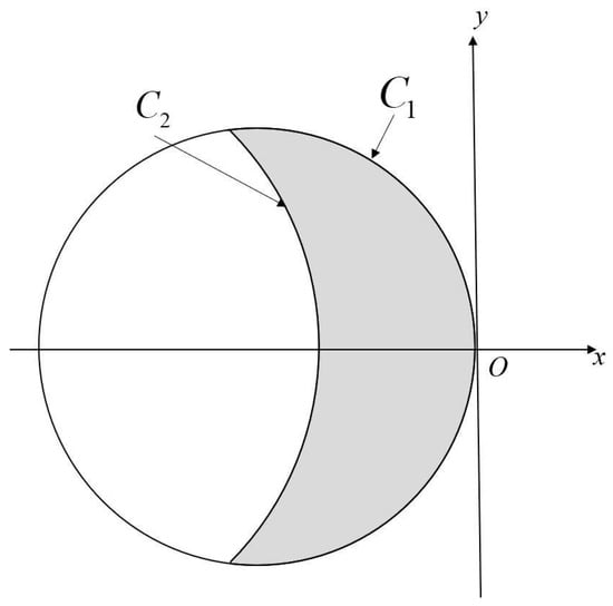 The contact area between the bottom surface of the disc and the surface of the workpiece ≤ 0, so the projection area of the contact area in the tangent plane of the contact point is a shaded area surrounded by two curves (Figure 6), where the curves C1 and C2 are expressed as follows: