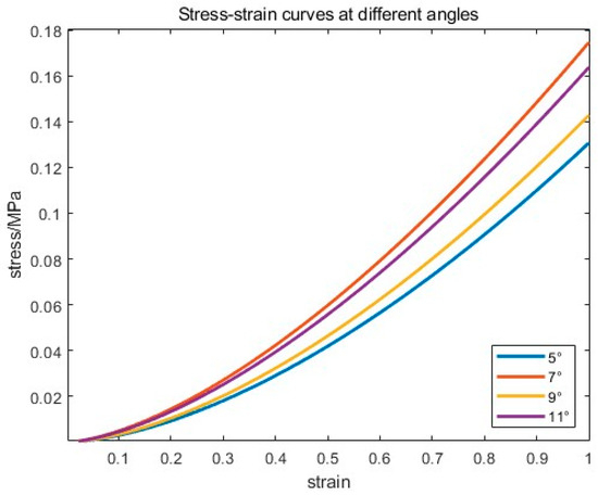 In the process of pressure determination in the contact area, there are two unknown material parameters, the nonlinear power index and the elasticity coefficient . When the tilt angle is certain, these two parameters can be fitted and identified by the downward pressure simulation. According to the material properties of the rubber and sponge to be treated, the Mooney-Rivlin and Yeoh intrinsic models are chosen to define the materials of the rubber insulation layer and the grinding disc sponge, respectively, and the specific material parameters are shown in Table 2 and Table 3.