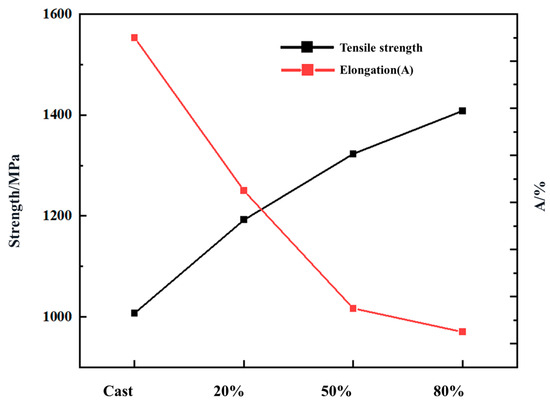 3.2. Influence of Different Reduction Amounts on the Microstructure and Mechanical Properties of Alloys