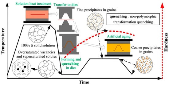 Hot stamping and forming process and organization evolution of heat-treatable reinforced aluminum alloys [2].