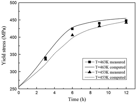 Measurement and prediction of yield stress changes in 2124 aluminum alloy aged at 453 K and 463 K [111].