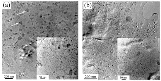 TEM images of precipitates at different temperatures of the forming dies: (a) 50 °C, (b) 200 °C and (c,d) 350 °C [40].