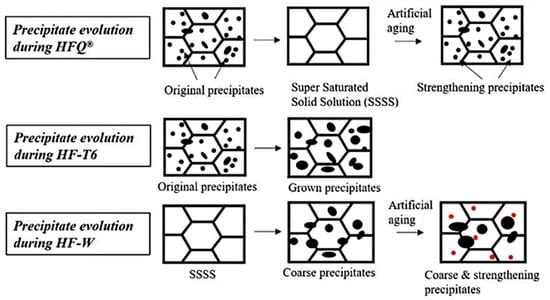 Strength prediction models provide a theoretical foundation for evaluating the performance of aluminum alloy formed parts. However, in practice, dynamic changes in the heat-treatment process such as rapid heating or cooling often cause deviations in material behavior from the ideal state. By analyzing key influencing factors in the model, heat-treatment steps can be optimized more accurately to achieve desired material properties [125,126].