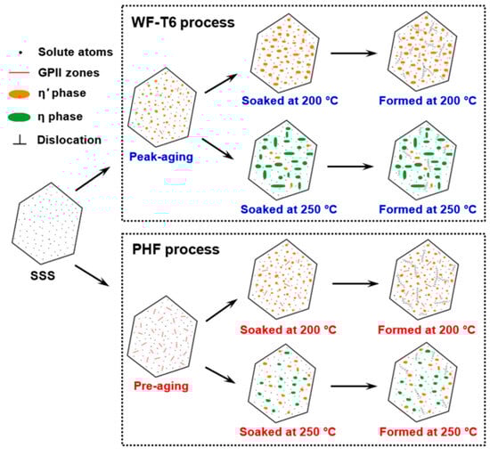 - Jin, W.; Yu, J.; Zhang, Z.; Jia, H.; Ren, M. Study on Ultra-High Temperature Contact Solution Treatment of Al–Zn–Mg–Cu Alloys. Metals 2021, 11, 842. [Google Scholar] [CrossRef]