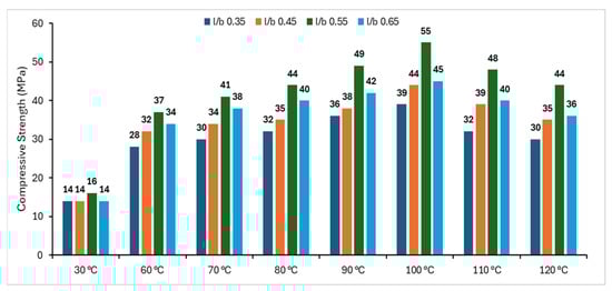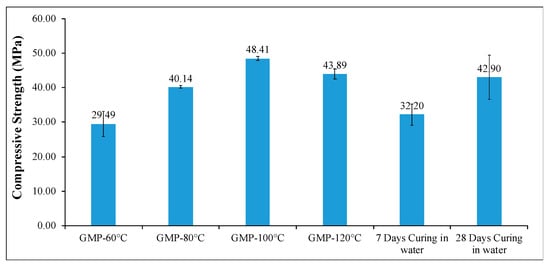 - There was a significant increase in the compressive strength values as the temperature was increased up to 100 °C, while the compressive strength values were reduced for samples cured at temperatures above 100 °C.