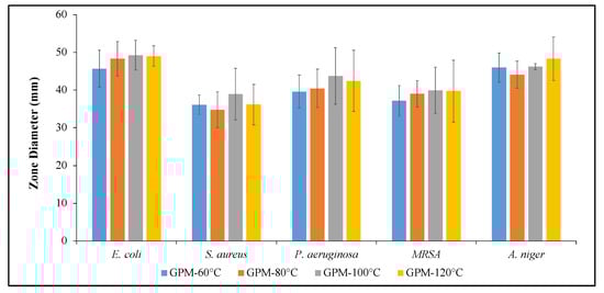 Inhibition zone diameters of GPMs cured at different temperatures.